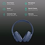 JBL Tune 720BT Bluetooth Headphone with Mic (Upto 76 Hours Playback, Over Ear, Blue), 1 Unit