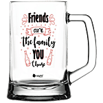 Indigifts Beer Mug - Printed Clear Glass, Multipurpose, Friends Are The Family You Choose, 325 ml