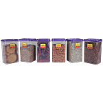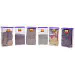Laplast Storewell Airtight Plastic Container - Purple Lid, Transparent, Rectangle, 1 L (Set of 6)