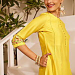No Question askedDaali Yellow Viscose Round Neck 3/4 Sleeves Blooming Mood Kurta With Two Pockets