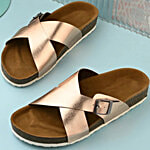 Hoversole Women's Xena Rose Gold Cork Cross Strap Sandals