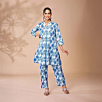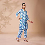 Daali Indigo Blue Cotton Regular Fit Floral Print Kurta, 1 Set (Size - XL)