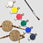 Mad Over Print Animal DIY MDF Rakhi With Paint & Paintbrush - Elephant, Cat