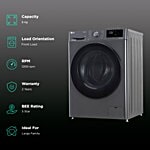 LG 8 Kg 5 Star Inverter Fully Automatic Front Load Washing Machine (FHP1208A5M.AMBQEIL, In-built Heater, Middle Black), 1 Unit