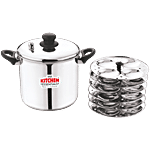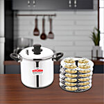 Kitchen Essentials Stainless Steel Steamer With 6 Idli Stands - 20 cm, Silver, 5.2 L (Set of 7)