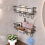 Lifelong Bathroom Corner Wall Mounted Storage Shelf With Hanging Hooks - Black, 2 pcs