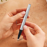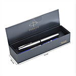No Question askedParker Frontier Stainless Steel Chrome Trim Roller Ball Pen - Blue Ink