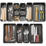 Cutting Edge Plastic Drawer & Cutlery Organiser - Black, 14 pcs