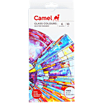 Camel Water Based Glass Colours - 6 Shades With Liner, 10 ml
